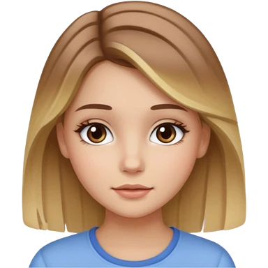 adolescente con maquillaje suave, con el cabello castaño y en las puntas del cabello mono, emoji