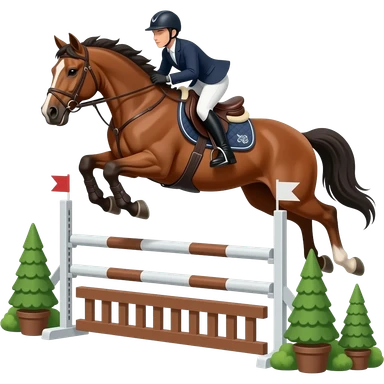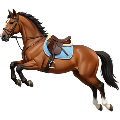 Caballo bonito con montura y un jinete; y saltando un salto emoji