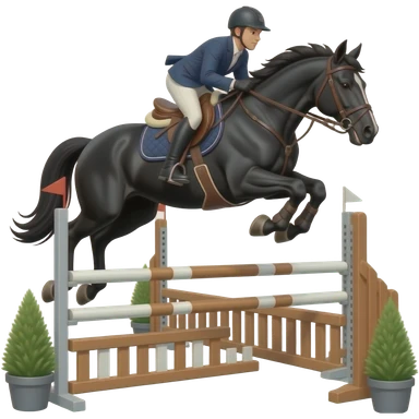 Caballo negro bonito con montura y un jinete; y saltando un salto emoji