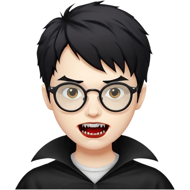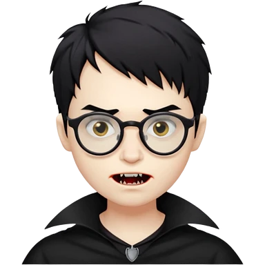 Cabelo bagunçado meio pequeno preto com cor de pele branco parecendo um vampiro e com oculos emoji