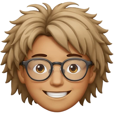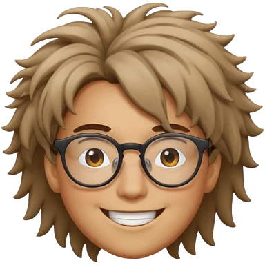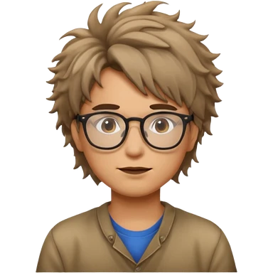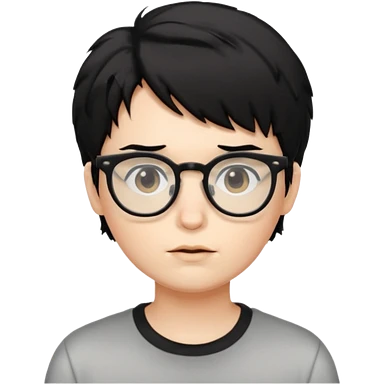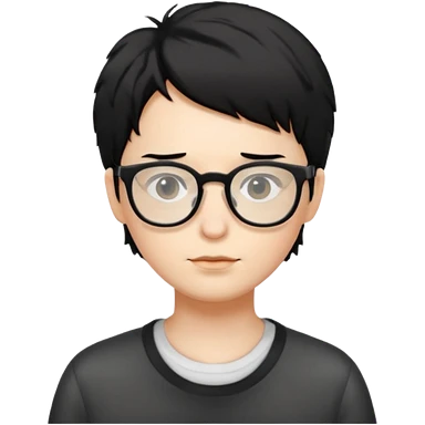 Cabelo bagunçado meio pequeno preto com cor de pele branca e com oculos emoji | AI Emoji Generator