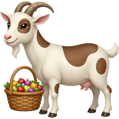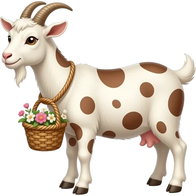 cabra con manchas marrones y una cesta bonita realista emoji