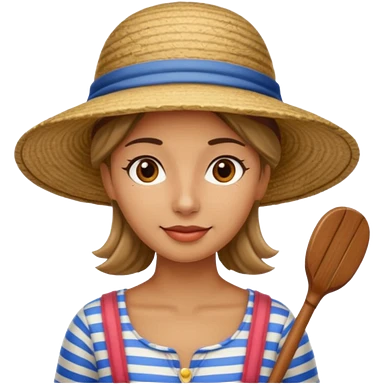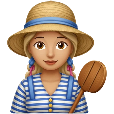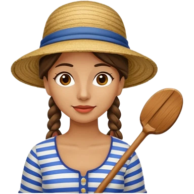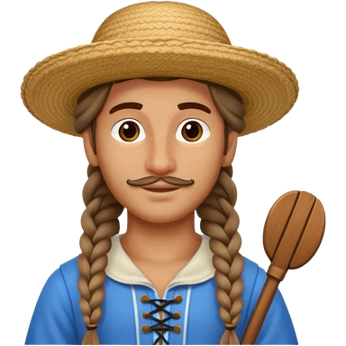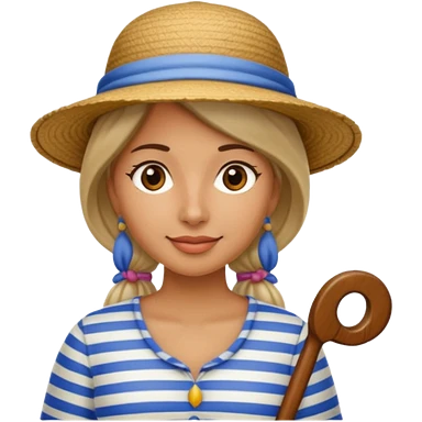 venice gondolier with long braided hair, iconic hat, normal glassess emoji