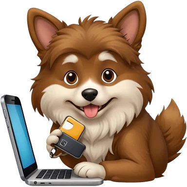 Cachorro ou amigo irritando o celular no computador emoji