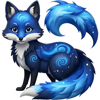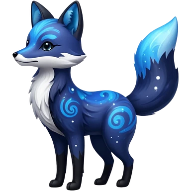 Black fox with blue swirling galaxy/marble pattern standing up emoji