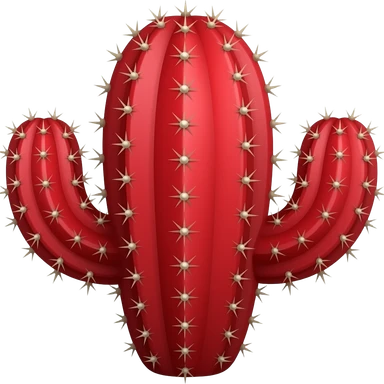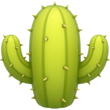 Cactus is a spherical dark green cactus with several white spikes protruding out of its surface, it has 2 eyes with huge pupils and highlights above it is a bright pink flower. Behind the Cactus is a stem holding a smaller cactus base appearing as a catapult emoji