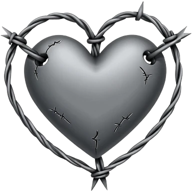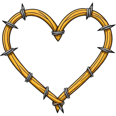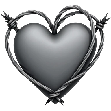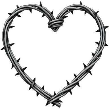 Minimal black line art heart made from barbed wire, hand-drawn sketch look, uneven ink strokes, 6–7 barbs with twisted knots, simple clean outline, centered on plain white background, high contrast emoji