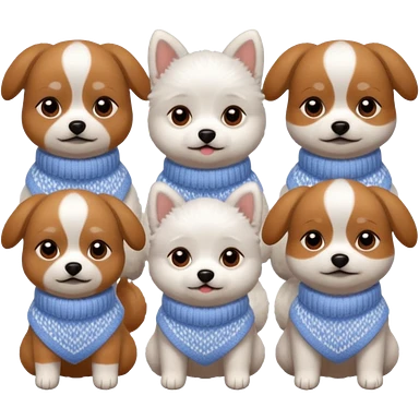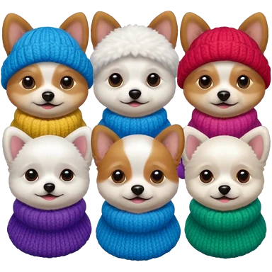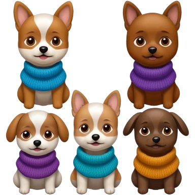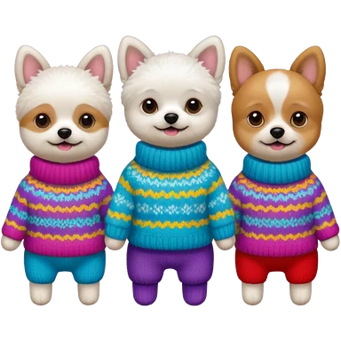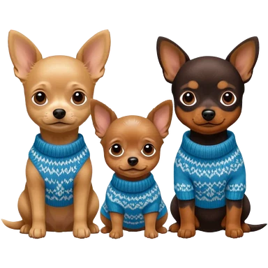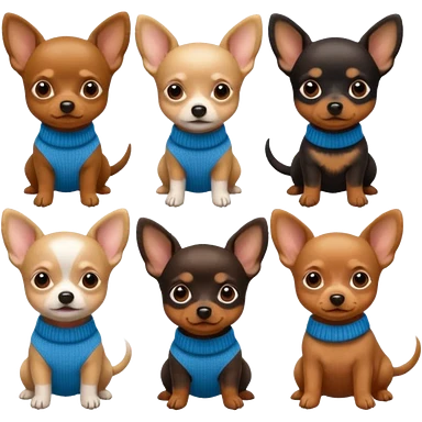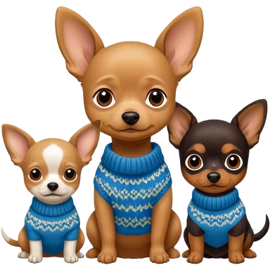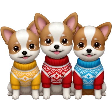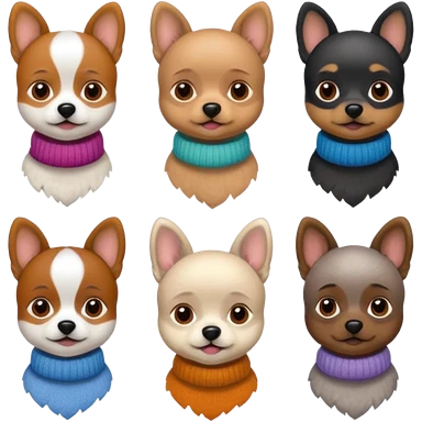 Cagnolini piccoli chiuaua, bassotto e Yorkshire seduti con vestitini di maglia di diverso colore emoji | AI Emoji Generator