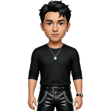 Marky Chavez, Rock Singer with black metallic sleeveless t-shirt, black metallic baggy pants with chain, necklace and earrings emoji