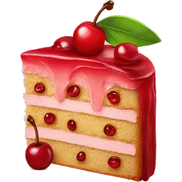 slice of chocolate cake with a cherry on top, cute emoji style emoji