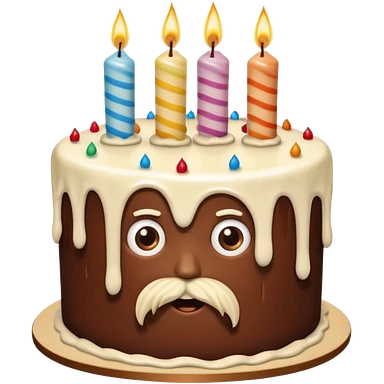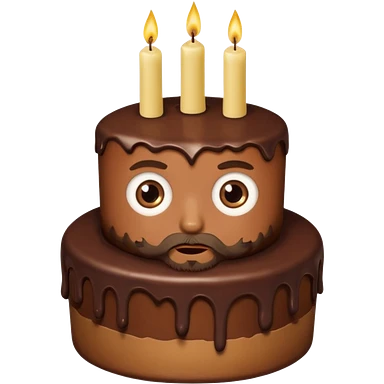 chocolate birthday cake with eyes and candles and beard emoji
