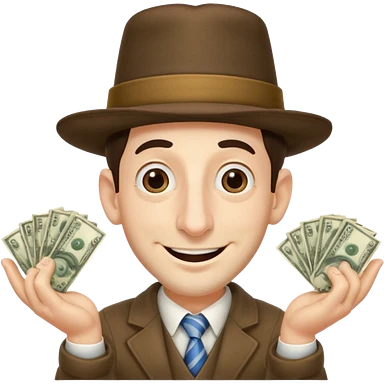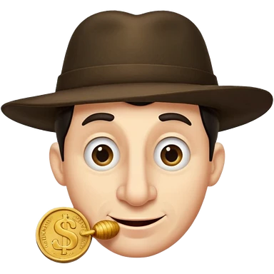 Dishonest big nosed side curled small hat greedy individual clipping a coin emoji
