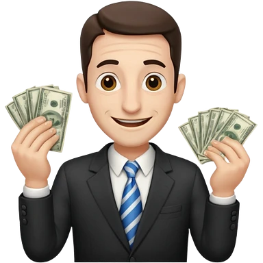 Jewish man with a big nose having his hands clenched together while smiling when he sees money emoji