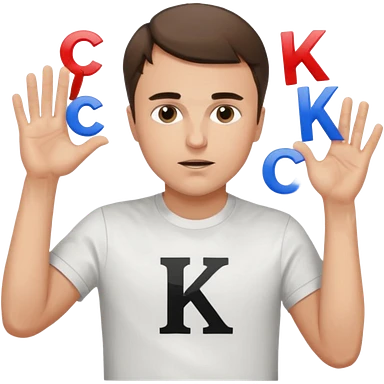 Charlie Kirk with a Charlie Chaplin mustache with a white freedom shirt while throwing up the letters c and k emoji