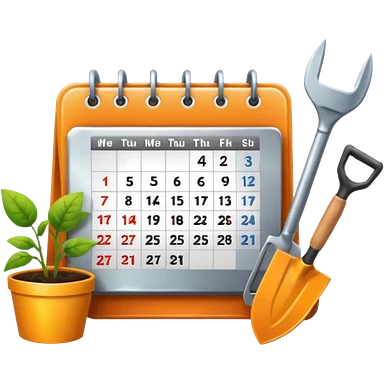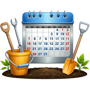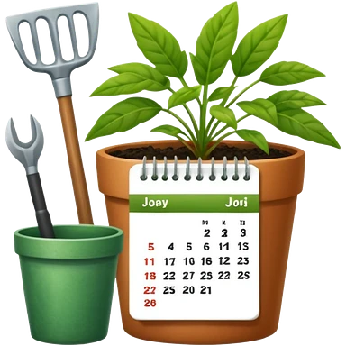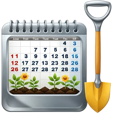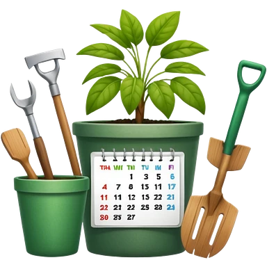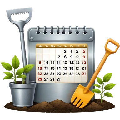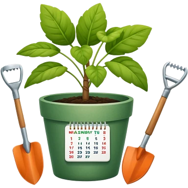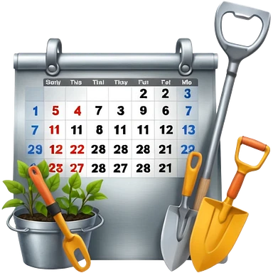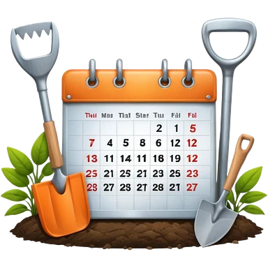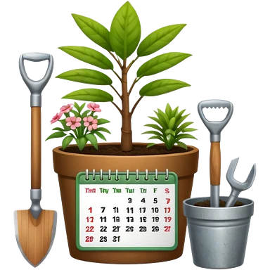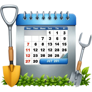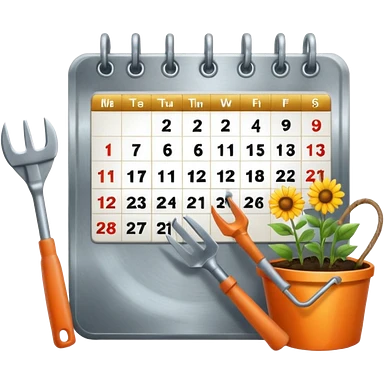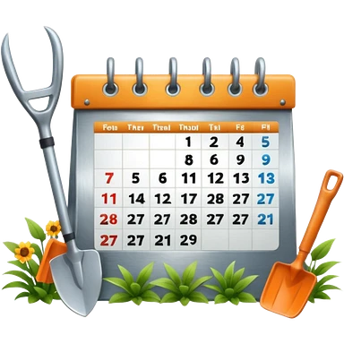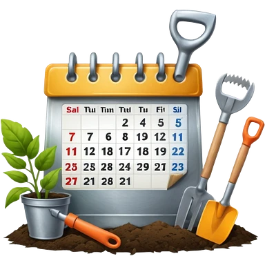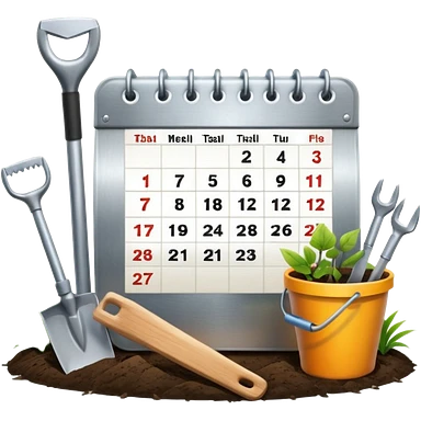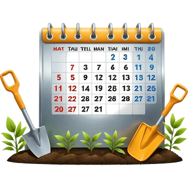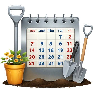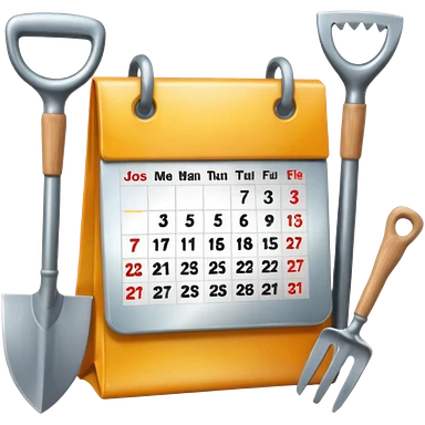 calendar icon with garden tools near. Transparent background emoji