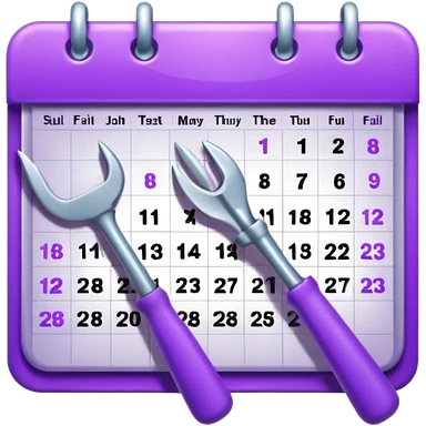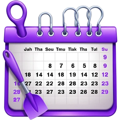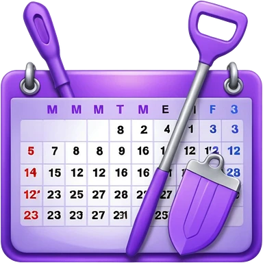 calendar icon with violet garden tools near. Transparent background emoji