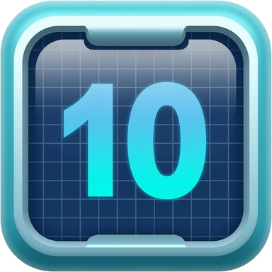 Futuristic calendar emoji. Bold number 10 in sky blue + sea turquoise gradient. Dark blue grid, deep blue background, starlight. Dots in coastal grey and sky white. Sea turquoise border. iOS style. emoji