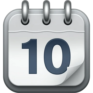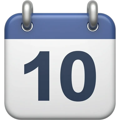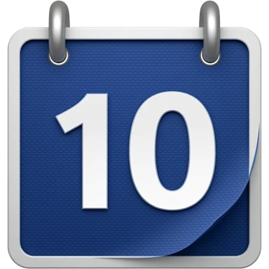 Apple-style emoji icon of a calendar in 3D perspective, single date number centered, date 10 with Deep blue colors emoji