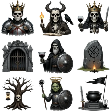 Create a set of 30 different medieval dark emojis emoji