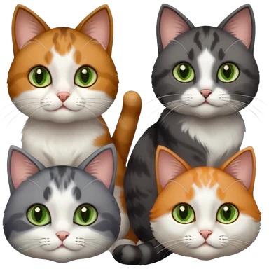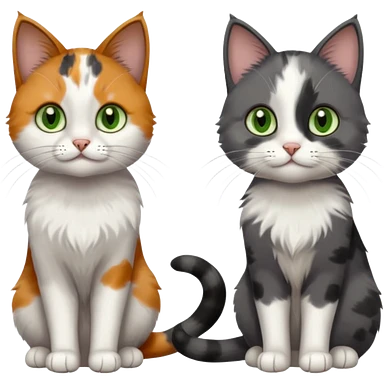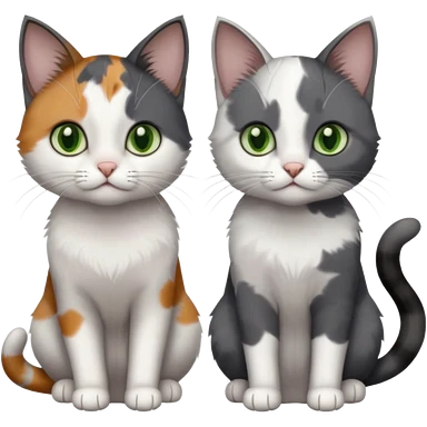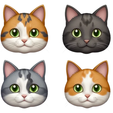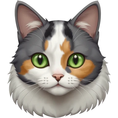 calico and white cat with small head, hazel eyes, and short but chubby body emoji | AI Emoji Generator