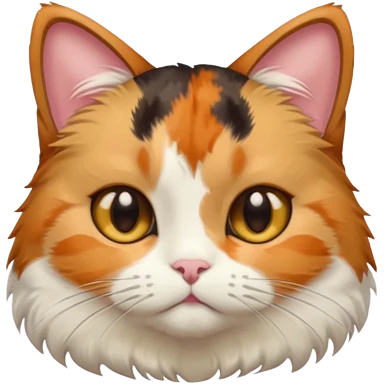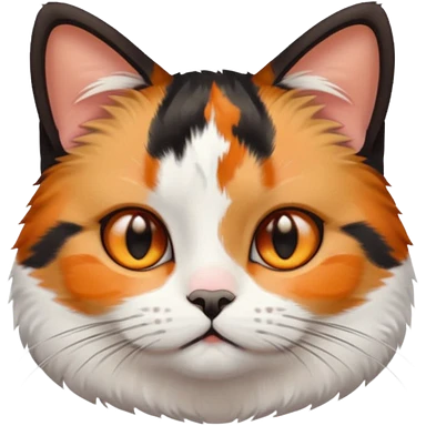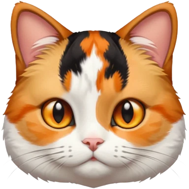 calico cat with cute slim face, small head, hazel eyes, and short but chubby body emoji