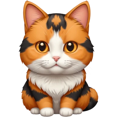 calico cat with small head, hazel eyes, and short but chubby body emoji