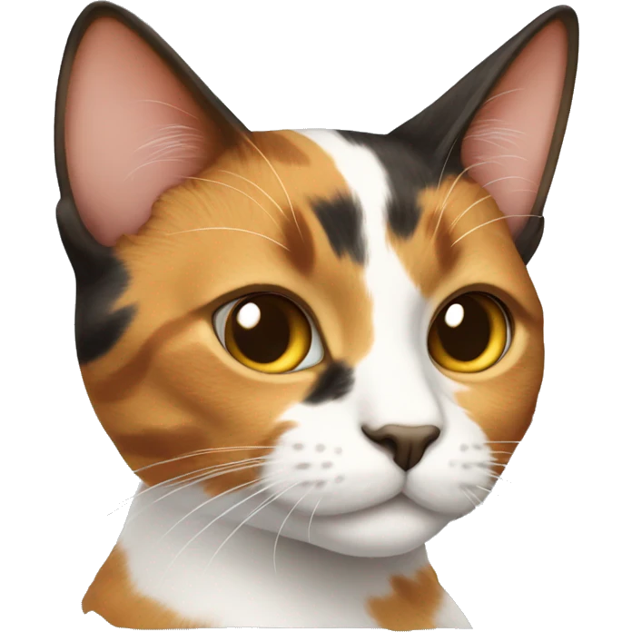 calico cat with cute slim face, small head, hazel eyes, and short but chubby body emoji
