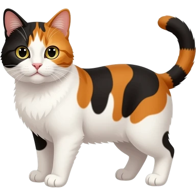calico cat with cute slim face, small head, hazel eyes, and short but chubby body emoji
