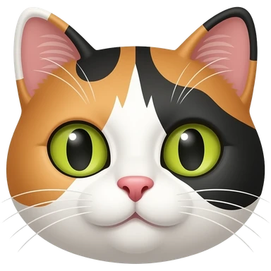 young calico cat face with a pink nose, white chin, green eyes, and black and orange markings emoji