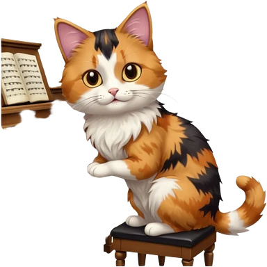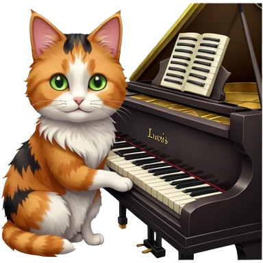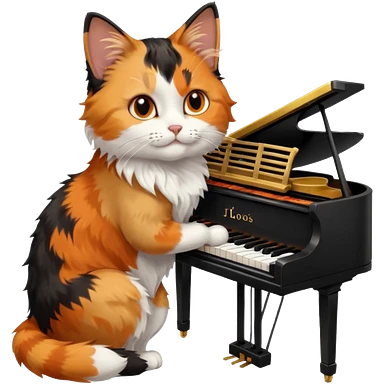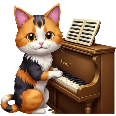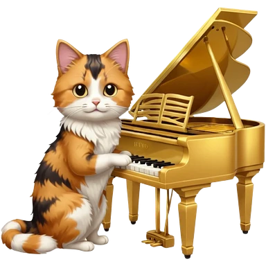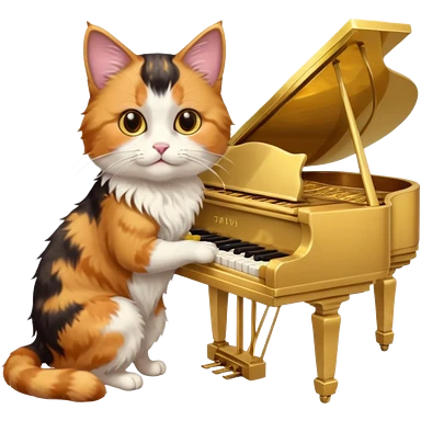 calico cat play gold piano, wear black suit, portrait emoji | AI Emoji Generator