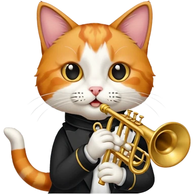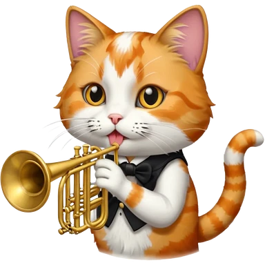 orange cat play gold saxophone, wear black suit, portrait emoji