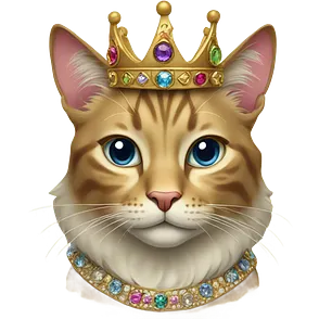 calico maine coon cat with orange, black and white patches wearing a golden crown emoji