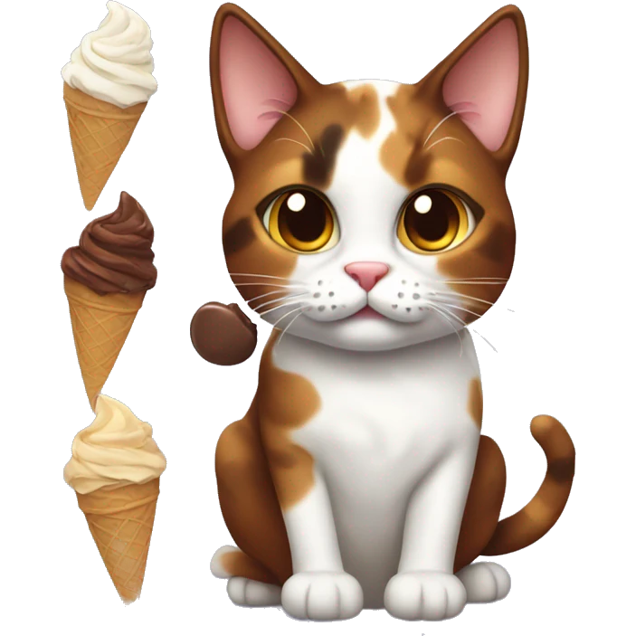calico cat with chocolate icecream emoji