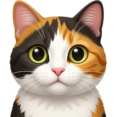 calico cat with cute slim face, small head, hazel eyes, and short but chubby body emoji