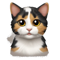 calico kitten, simple and cute, round face, big eyes, minimal details, orange black and white calico pattern emoji