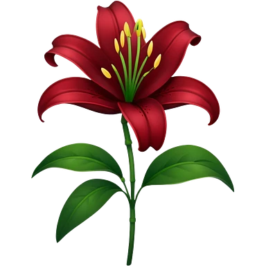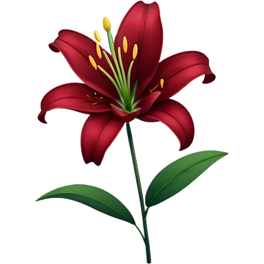 A lily flower in a dark cherry red colour with a dark green stem emoji