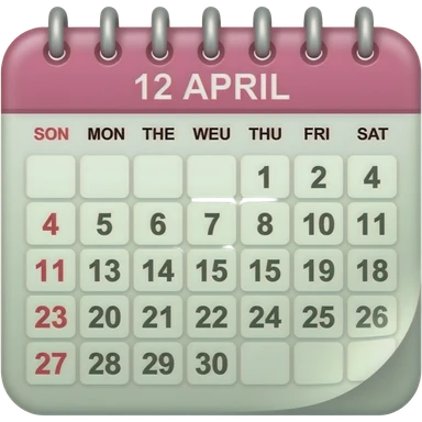 soft pink green calender 12 April, transparent background inspired by barbie colour pallete emoji