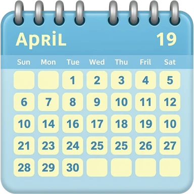 soft blue yellow calendar 19th april birthday icon, transparent background inspired by barbie colour pallete emoji