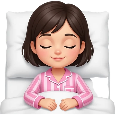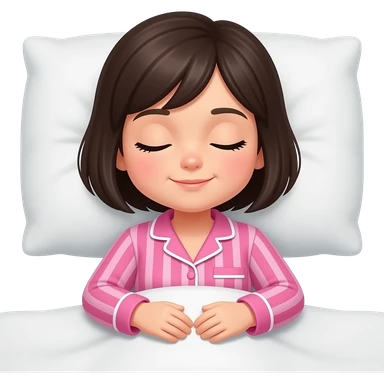 chica de cabello oscuro y corto, con una pijama color rosa con rayas, dormida en su cama emoji