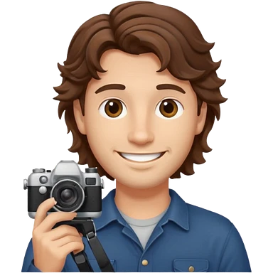 A guy with blond-brown curl hairs with a camera in his hand emoji