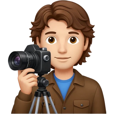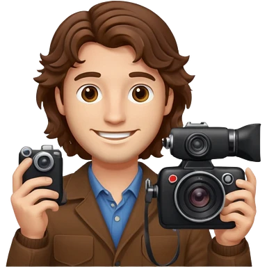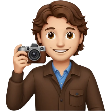 man with brown hair young face brown eyes with camera infront of his face emoji