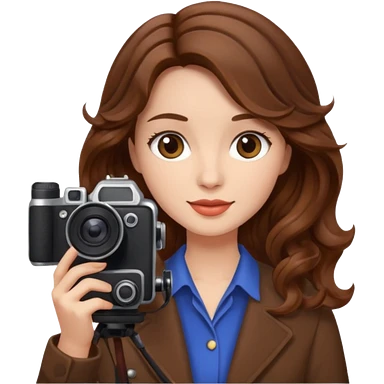 Realistic camera girl with camera and brown hair and blue eyes emoji