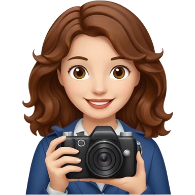 Realistic camera girl with camera and brown long hair and a fringe emoji