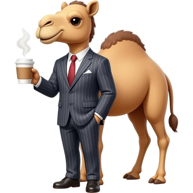 Camel with a suit on and coffee emoji