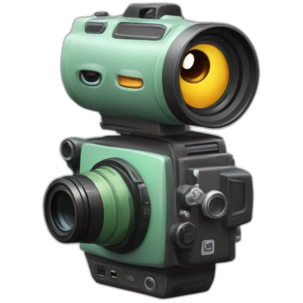A beige camera and next to it a landscape photograph of the frame behind the camera emoji