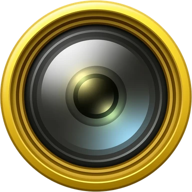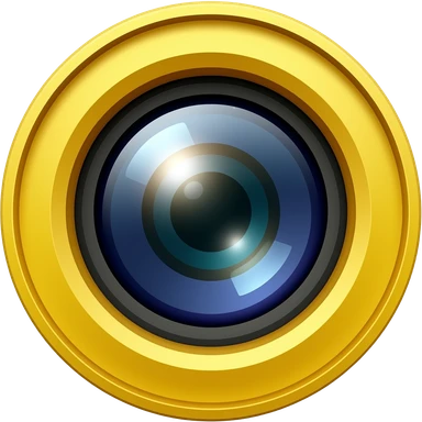 A round camera lens, apple emoji style, minimalist, with highlights, pink, no faces, no smileys, only lens emoji