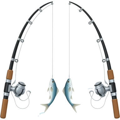 2 fishing rods pov style facing away from the camera with 2 fish on the end of the lines emoji