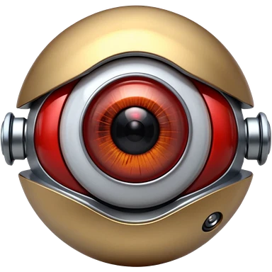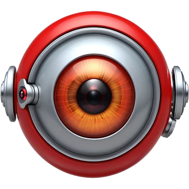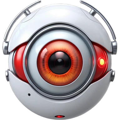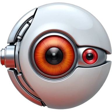 3D render of Robotic Eye, futuristic cyborg aesthetic, fusion of organic skin and chrome metal, white eyeball with a glowing red camera lens iris, exposed wiring, Apple emoji style, isolated on white background --v 6.0. emoji