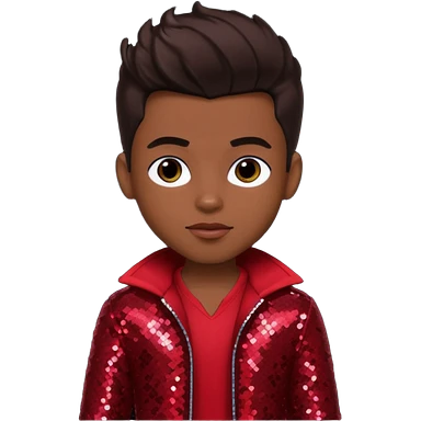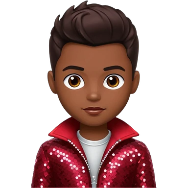 Dylan from Bratz Boyz with medium dark skin, dark brown hair and dark red sequin outfit emoji