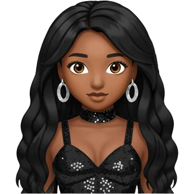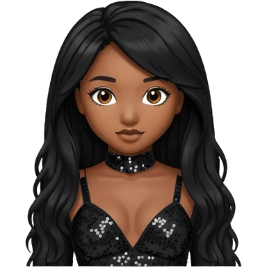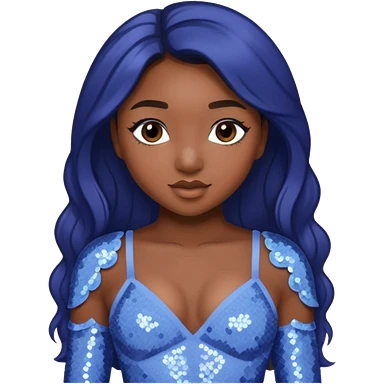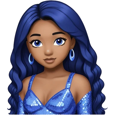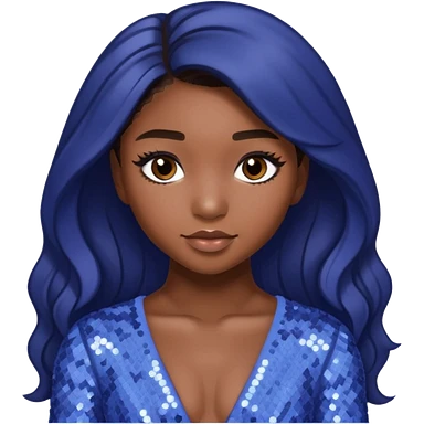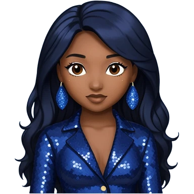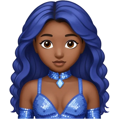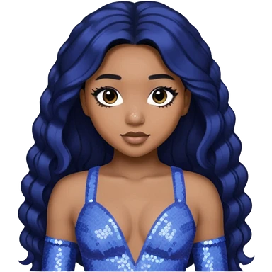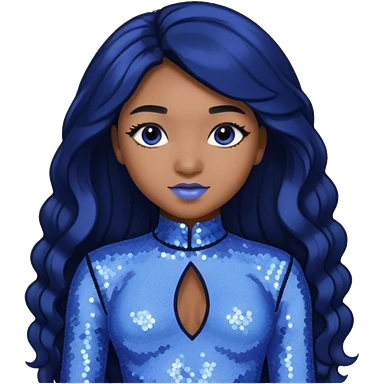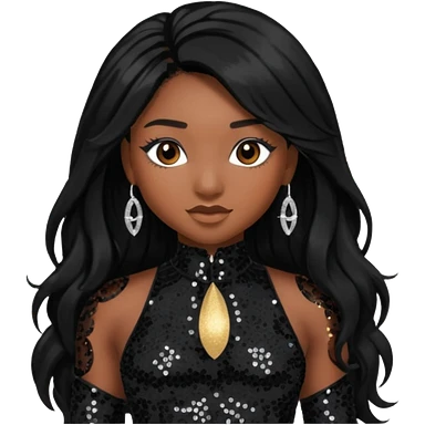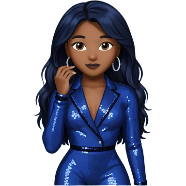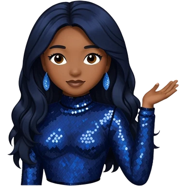 Normani from Fifth Harmony with long black hair, dark indigo sequin outfit emoji